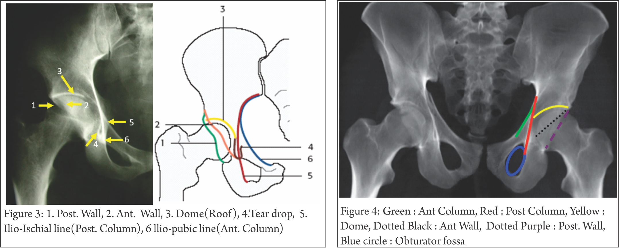 Ilioischial lines 은 posterior column, T shaped, Transverse