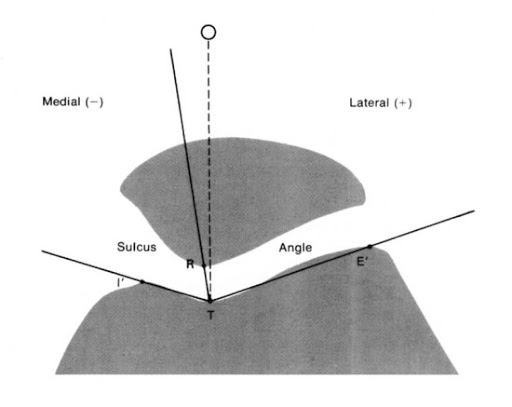 1. Sulcus angle (138 +-6도) : 150도 이상시 비정상