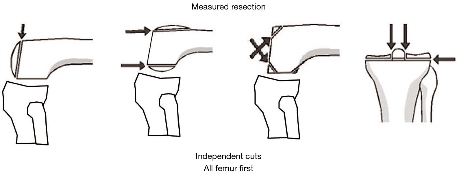 1. post. condylar osteophye remove 2. resect distal femur 3. release post. capsule |