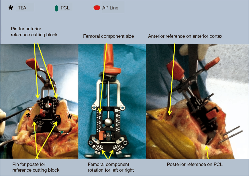 | Femoral component (anterior reference system) | Upsizing Downsizing |