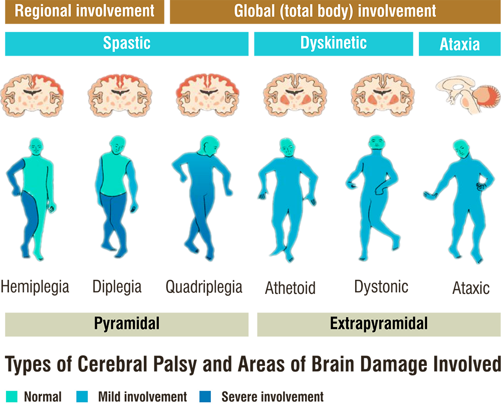 Ataxic : 운동 실조형으로, DTR이 감소합니다. 연령이 증가하면서 자연적으로 호전됩니다. 평형감각이나 협동운동이 어렵습니다.
