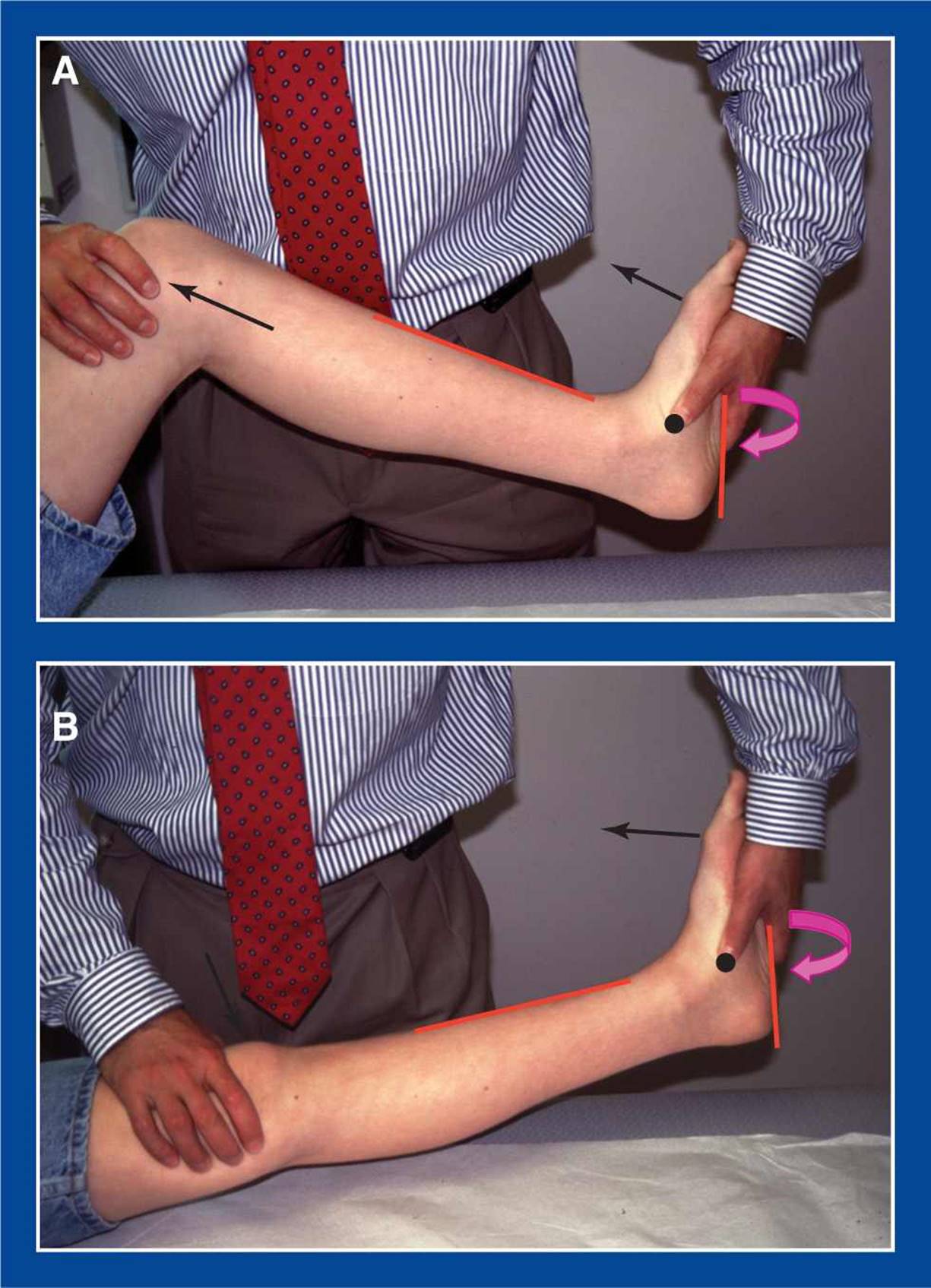 Silfverskiold test : 경직성 첨족변형 시 gastrocnemius인지 gastrocnemius + soleus 인지 감별을 할 수 있는 검사입니다. 슬관절 굴곡시 조금더 족부의 dorsiflexion 이 가능하다면 Gastrocnemius에만 구축이 있는 것으로 판단하여 비복근 후퇴술(Strayer)나 Gastrocnemius origin release 등을 시행해 볼 수 있으며, 굴곡시에도 구축이 계속 남아있다면 Soleus도 구축이 함께 있는 상태로 Tendoachilles lengthening을 통해 교정해야합니다.