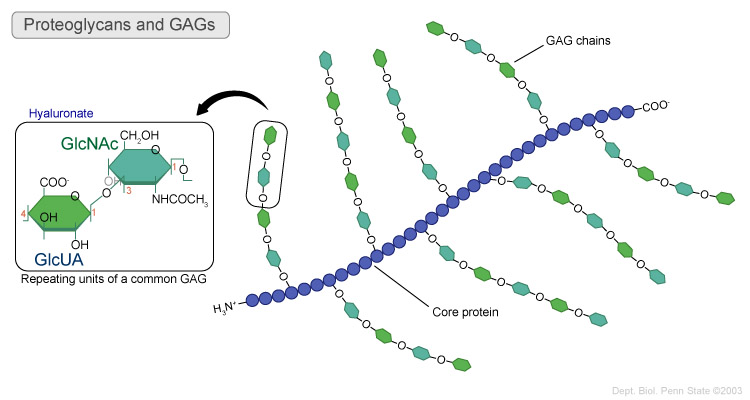 Dermatan 이나 keratan sulfate는 감소하게 됩니다. (노화, 디스크 변성 시에는 증가)