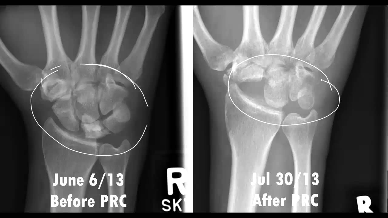 증상으로는 파악력이 감소되며 수근 관절 굴곡 제한이 많이 있습니다.