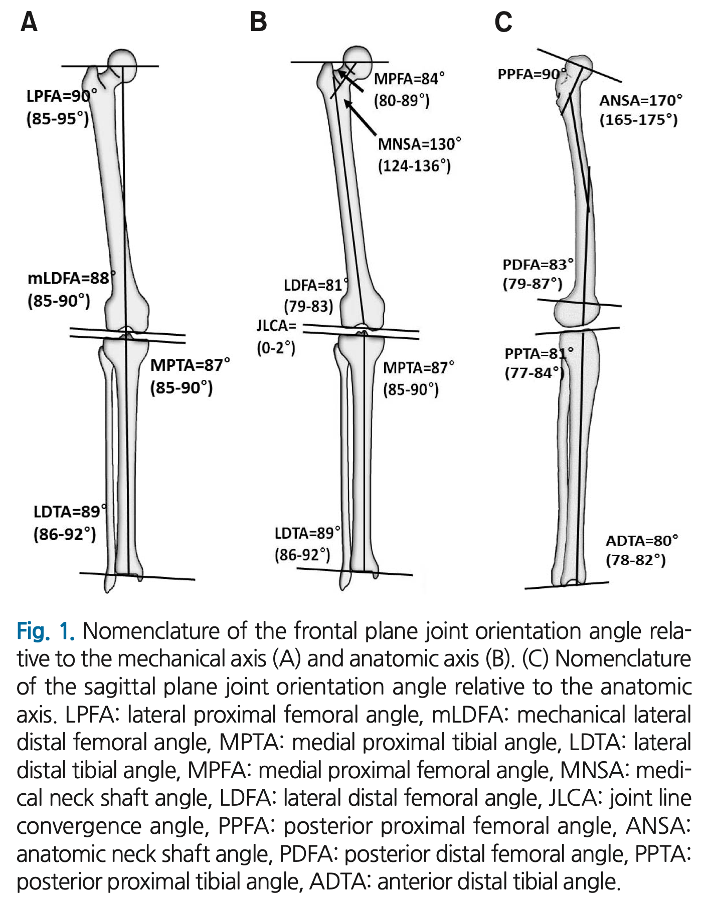 최근 인공관절 수술이나 각교정술 등 여러가지 절골술들이 발전하면서 골변형을 교정하고 있습니다. 하지만 이러한 교정을 하기 전에 정상적인 각도를 이해하고 있어야 합니다. 대부분 anatomical angle 을 기준으로 이해하면 좋을 것 같습니다.