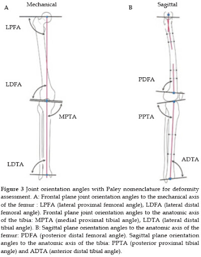 frontal plane에서 mechanical angle과 anatomical angle을 고려할 수 있으며 sagittal plane 에서는 anatomical angle을 확인할 수 있습니다.